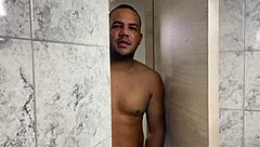 latin ebony slut rides big cock in shower after massage and creampie