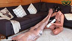 Curvy babe dominates boyfriend with dildo and vibrator in femdom scene