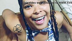 Canela Skin destroys this cock with her big oiled ass, she moans