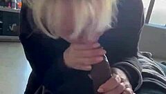 Shy innocent lady takes monster cock in mouth