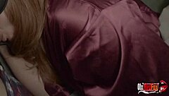 Asian mom bent over in fishnets licks shaved pussy during anal assfucking masturbation