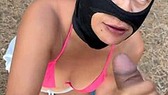 super hot brunette gives slow-motion blowjob in forest outdoors