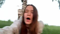 Shy Russian Girl's Outdoor Blowjob