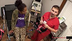 Sandra Chappelle, the nurse, gives freshman a mandatory orgasm with Hitachi backstage.