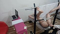 Dirty milf's pussy explored on gyno chair! 😳