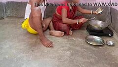 Indian wife cooking while cuckold husband drills her backdoor hard.