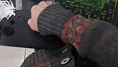moaning skinny girl cums hard on machine at work pov