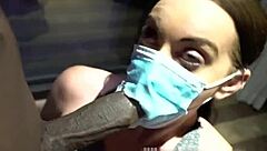 Big White Cock Suck Mask Falls Off She Carries On Sucking