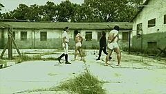 Dominatrix Mistress April interrogates in military camp strapon session