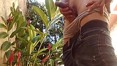 solo guy strokes hard outdoors in casual masturbation session