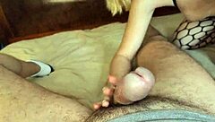 taboo step mom kristi sneaks a handjob for son with cum on tits