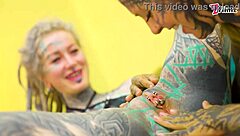Tattooed alt-girls go wild with lesbian dildo fucking spit kissing and punk goth toys