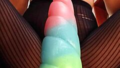 bad dragon toy stretches hairy pussy close-up 08:57