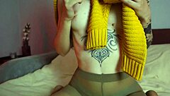 Redhead Sucking Hard in Stockings and Pantyhose Action