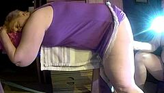 59yo slutwife bent over sawhorse dildo fucks fat pussy closeup