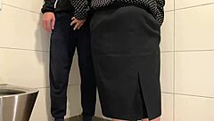 curvy woman strokes stranger to cum explosion in public toilet?