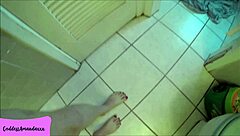 Spying on stepsister in bathroom, admiring her delicious Brazilian ass.