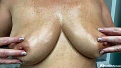 Oiled up babe getting tongued in a sensual massage?