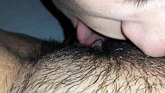 Woke her up licking that hairy pussy to orgasm
