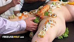busty asian chef serves freeuse pounding amid gourmet feast