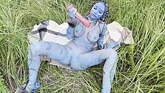 Green Alien Anna Bends Over for Doggystyle Sex and Oral Creampie with Monster Cock