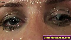 petite teen gets messy facial in extreme closeup masturbation action