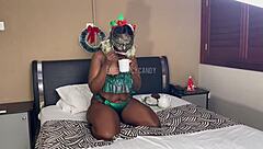 thick black booty bounces wildly on massive oversized dildo christmas morning