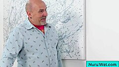 masseuse covers teen in nuru gel for slippery fun