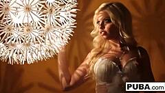 retro blonde babe teases big tits pussy in sexy solo