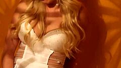 retro blonde babe teases big tits pussy in sexy solo