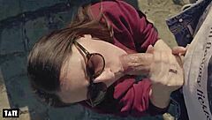 outdoor thrill as amateur deepthroats stranger's cock hungrily