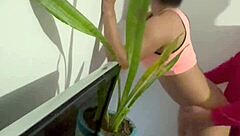 why does this naughty girl flash her tits while cleaning?