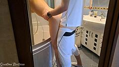 Brunette neighbor fucked doggystyle while cleaning bath moaning hard