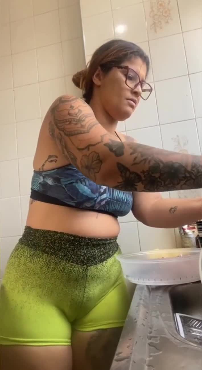 Married woman records cooking videos but really wants to show swollen pussy