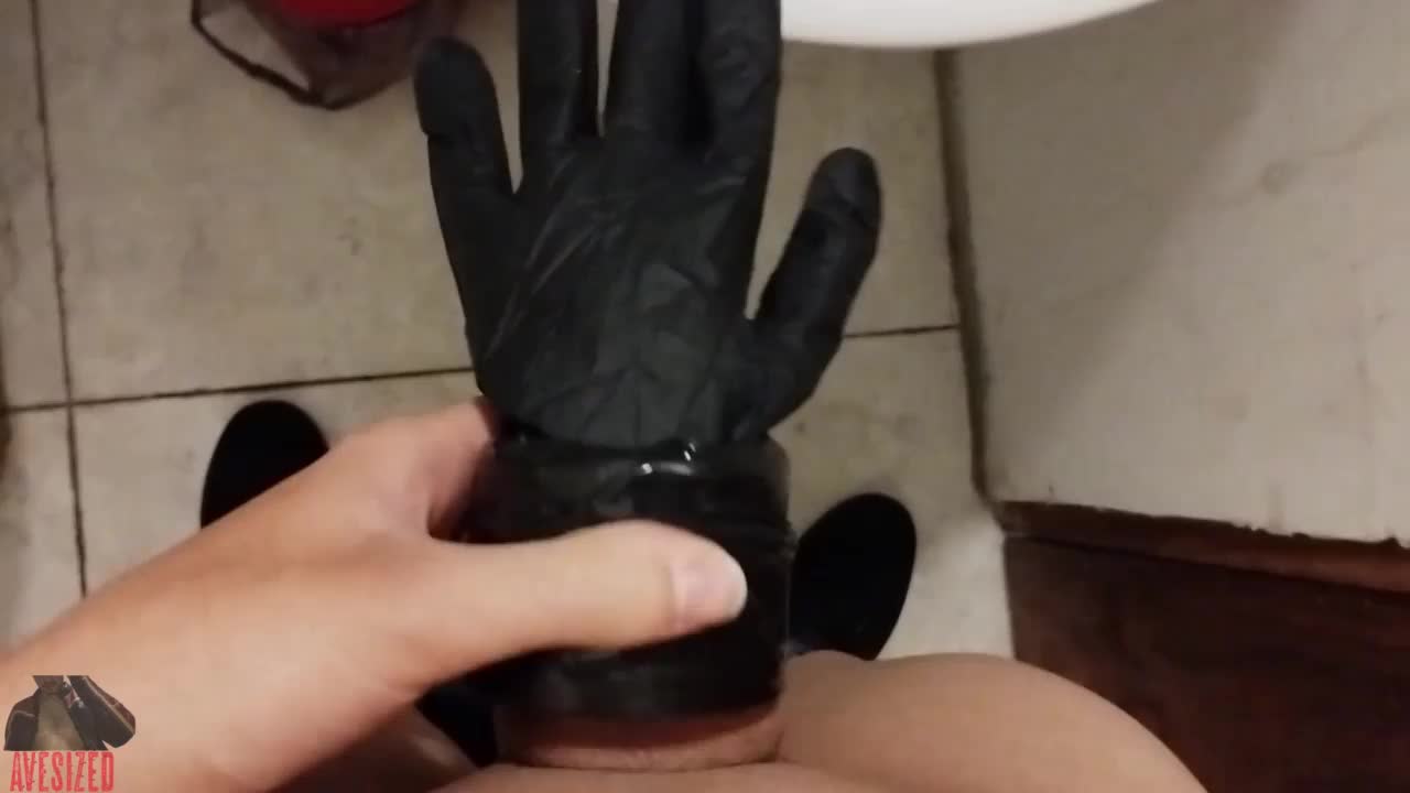 Skinny young amateur strokes huge cock solo on workbench at work
