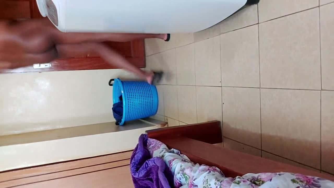 little 18+ stepsister strips naked in bedroom for hot video recording.