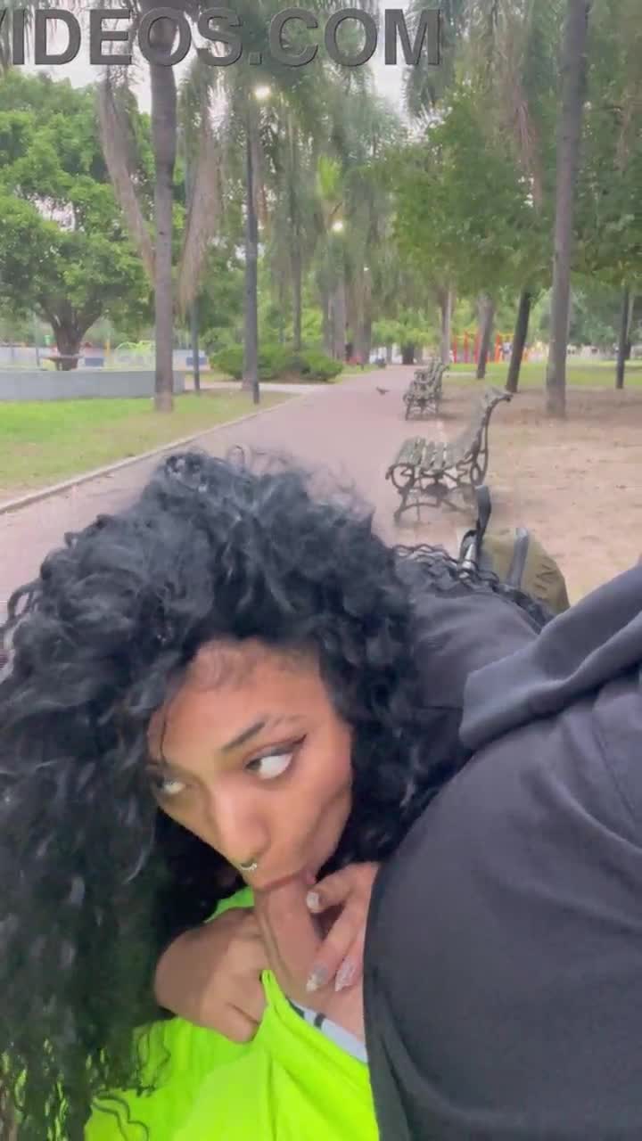 this latina teen is blowing a cock in the public park, looking so hot with blue eyes
